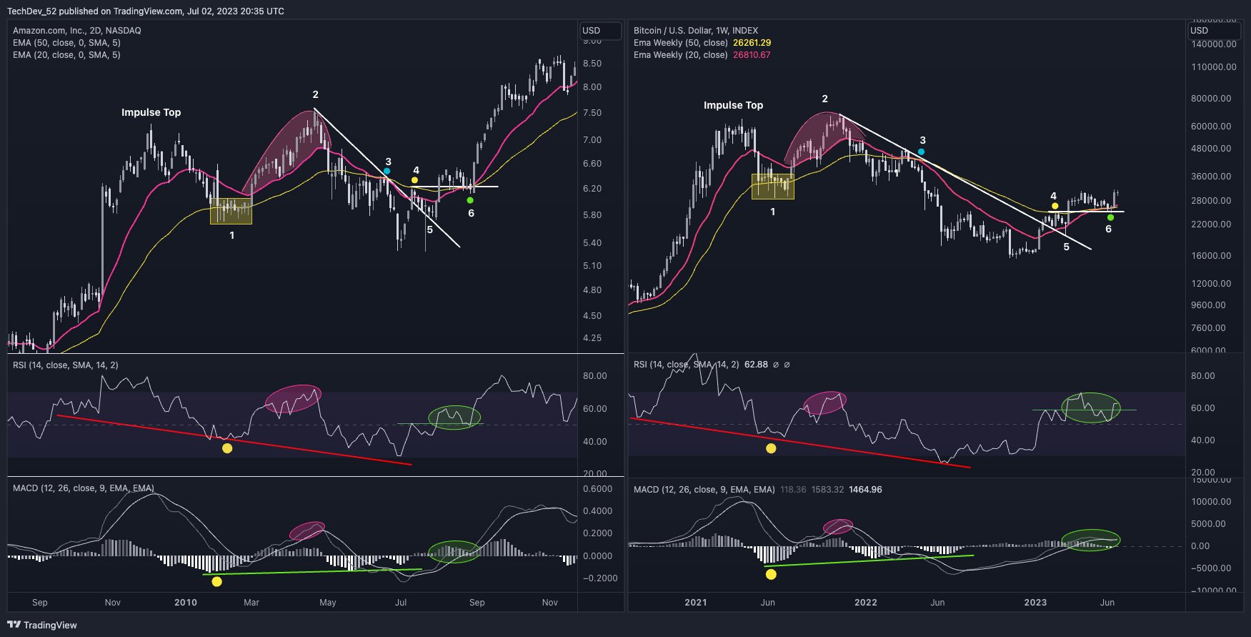 TechDev nói rằng Bitcoin đã vượt qua một xung lực giá trước đó để hỗ trợ trong bối cảnh phục hồi mạnh mẽ khỏi các đường trung bình động hàm mũ 20 và 50. Ông so sánh nó với động thái của Nasdaq vào năm 2010.