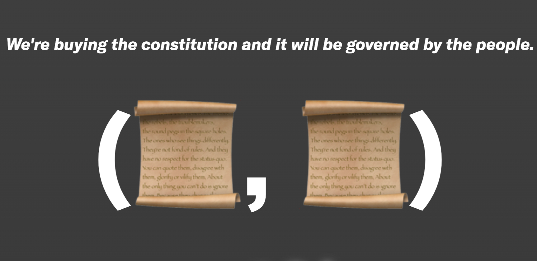 ToggleConstitutionDAO là một tổ chức phi tập trung, bao gồm “những người bạn trên internet” và các nhà đầu tư tiền điện tử tập hợp lại để thành lập quỹ mua lại các bản sao của Hiến pháp hoa kỳ. Hay nói cách khác, dự án này được tạo nên từ một nhóm nhỏ người trò chuyện với nhau sau đó họ quyết định gọi vốn cùng nhau để kêu gọi tài trợ chung cho sứ mệnh DAO của họ.