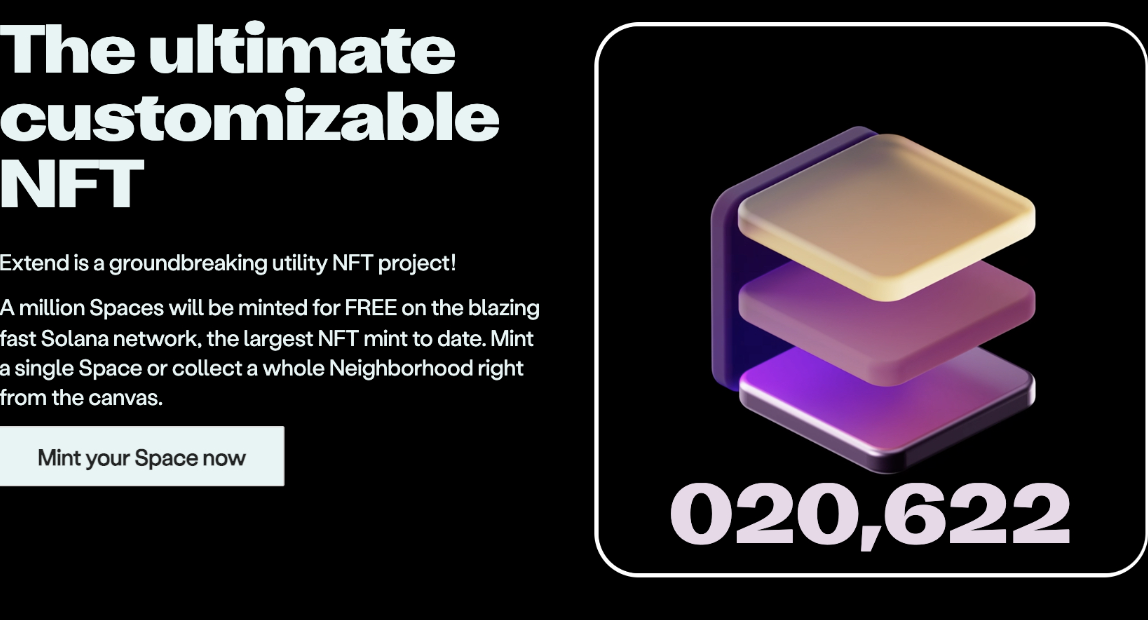 Extend là NFT Space có thể tùy chỉnh cuối cùng trên Solana Blockchain. Đó là một không gian NFT với nhiều công cụ và chức năng, nơi người dùng có thể mở rộng ứng dụng của họ trên chuỗi.
