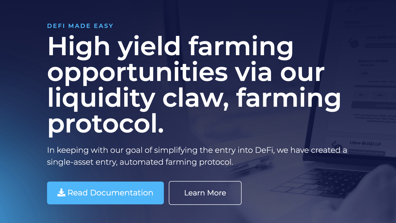 • LibreFarm: Trang trại năng suất một cú nhấp chuột của giao thức Libre. Người dùng có thể gửi tài sản vào trang trại mà họ muốn, và sau đó Libre sẽ lo phần còn lại.
