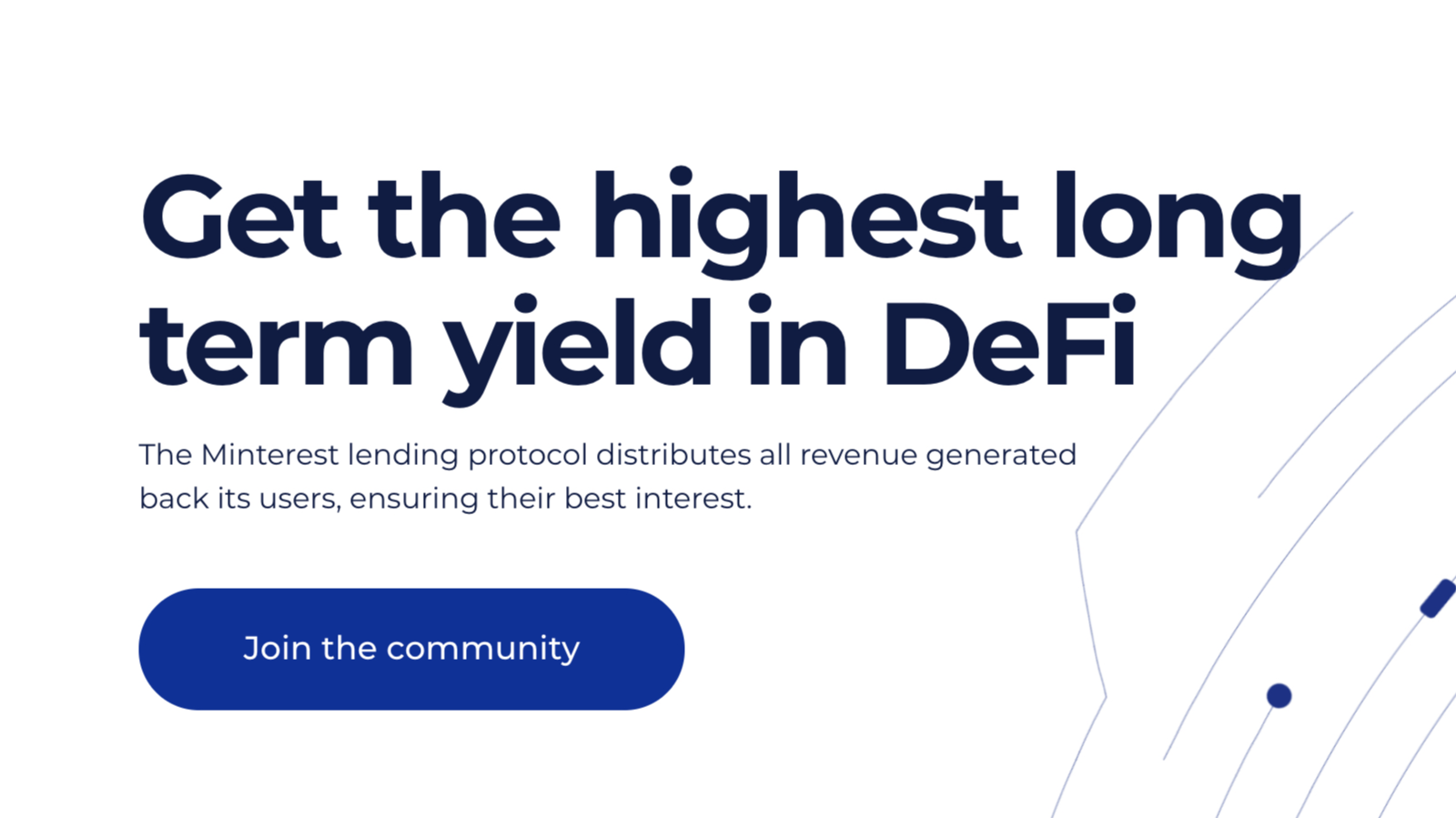 Minterest có cơ chế mua lại đầu tiên trên thế giới, cơ chế này tự động chuyển doanh thu cho những người dùng nền tảng đóng góp. Bằng cách này, người dùng nhận được doanh thu từ giao thức dựa trên lãi suất đi vay / cho vay hàng đầu trong ngành, tạo ra tiềm năng cho lợi suất dài hạn cao nhất trong DeFi. Giao thức này cũng có một kho bạc trực tuyến để nắm bắt và chia sẻ doanh thu thanh lý với người dùng.