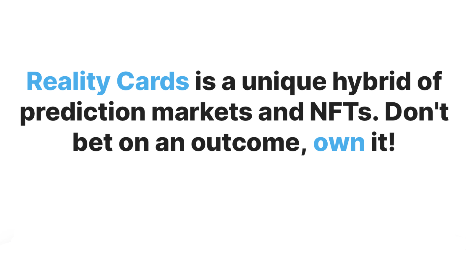 Như đã đề cập, Reality Cards là một thị trường dự đoán không giống bất kỳ thị trường nào khác. Người dùng không đặt cược vào kết quả, họ sở hữu chúng.
