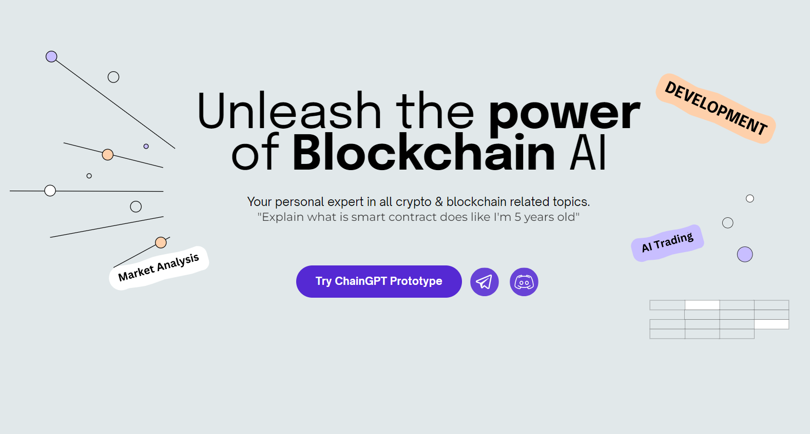 ChainGPT là một mô hình AI tiên tiến hỗ trợ các cá nhân và doanh nghiệp mọi thứ liên quan đến công nghệ Crypto và Blockchain. Truy cập các giải pháp và trường hợp sử dụng không giới hạn bằng mô hình AI tiên tiến: Phân tích chuỗi khối, giao dịch AI, phát triển hợp đồng thông minh, kiểm toán AI, quản lý rủi ro, nguồn tin tức về tiền điện tử, v.v.