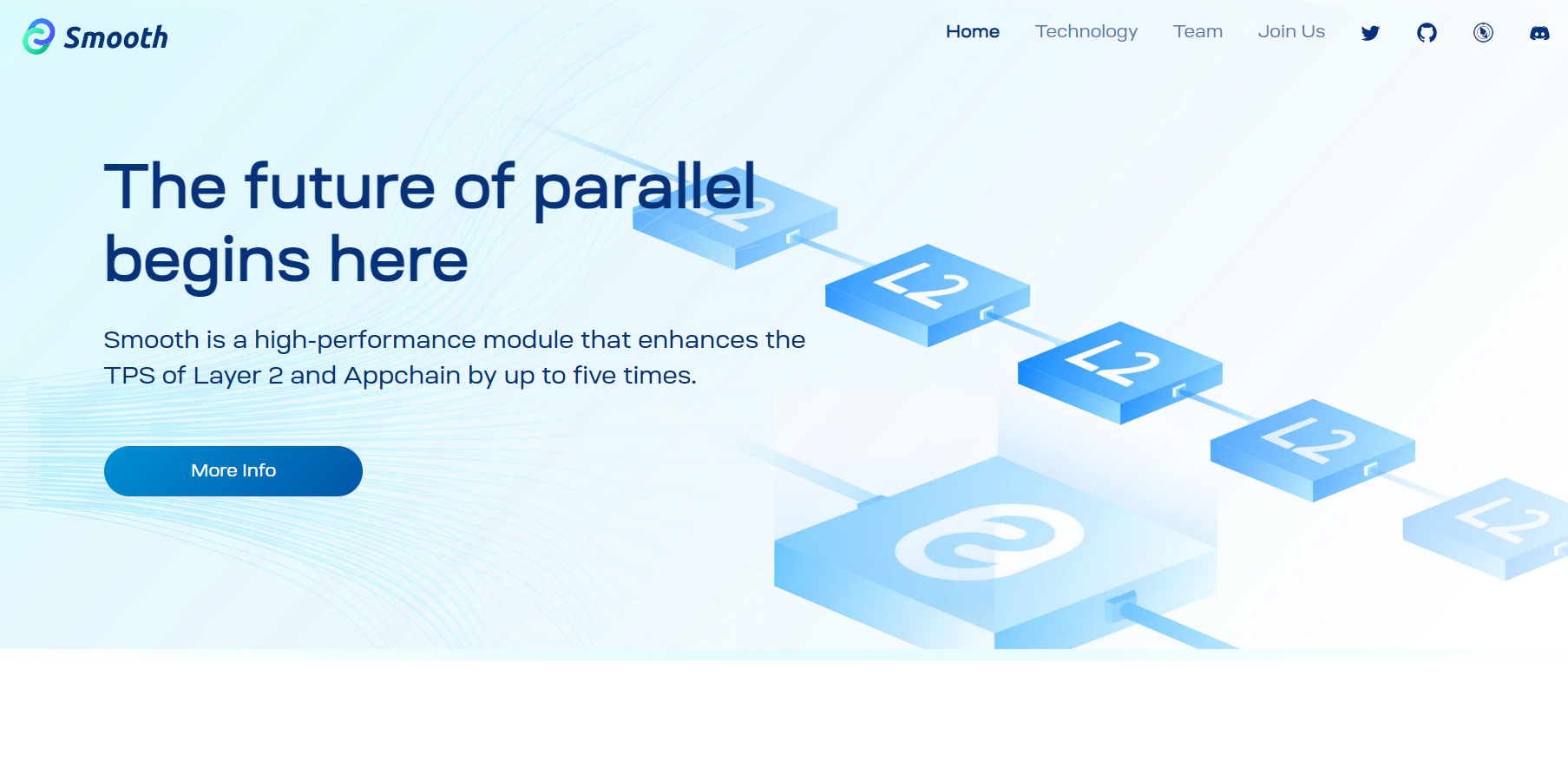Smooth là một mô-đun hiệu suất cao giúp tăng cường giao dịch mỗi giây hoặc TPS của mạng Lớp 2 và các chuỗi khối hoặc chuỗi ứng dụng dành riêng cho ứng dụng lên đến năm lần. Mạng Smooth hiện đang được phát triển. Nó sẽ ra mắt một testnet trong quý thứ ba.