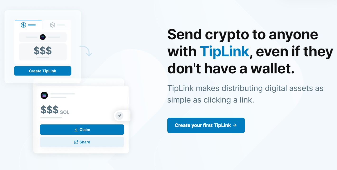 TipLink là một chiếc ví nhẹ được thiết kế để chuyển tài sản kỹ thuật số dễ dàng như gửi liên kết. Ví không được quản lý cung cấp cho bạn toàn quyền kiểm soát tài sản của mình bằng cách kết nối tài khoản Gmail hoặc ví Solana của bạn. Bất kỳ ai có tiền điện tử đều có thể tạo TipLink và gửi nó cho bất kỳ ai trên bất kỳ nền tảng nào (văn bản, bất hòa, email, v.v.).