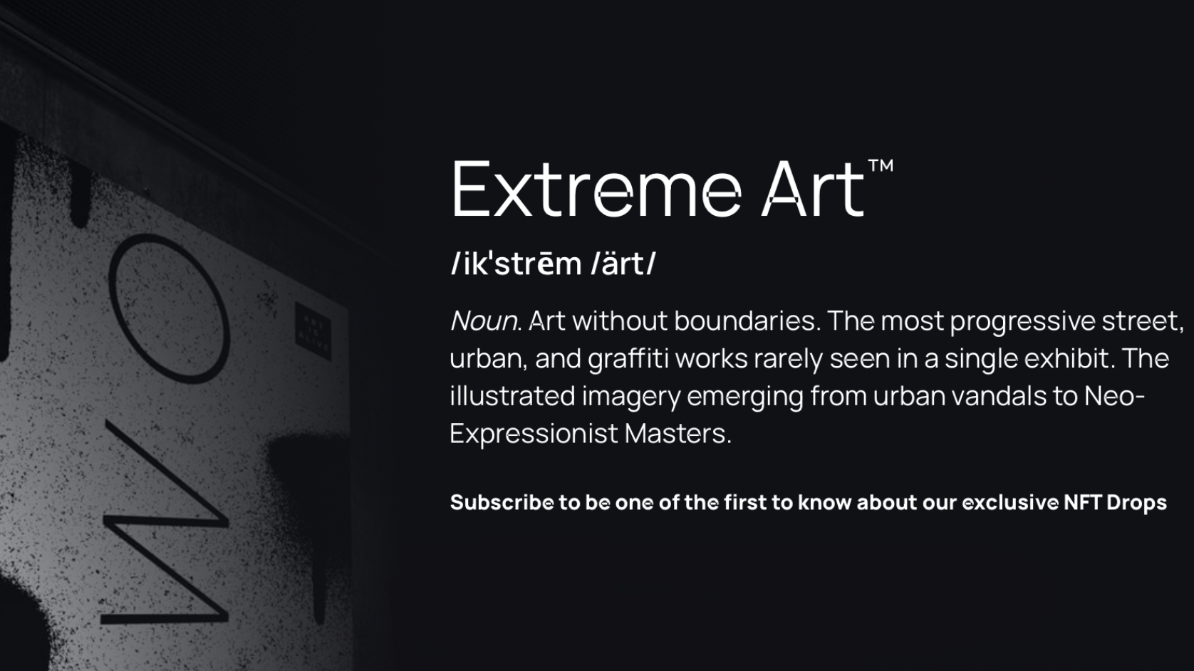 Extreme ArtTM là một khái niệm chỉ về nghệ thuật không biên giới. Các tác phẩm đường phố, đô thị và graffiti đẹp nhất hiếm khi có trong một cuộc triển lãm duy nhất. Extreme ArtTM là các hình ảnh minh họa được sáng tạo bắt nguồn từ những kẻ phá hoại đường phố đến các bậc thầy theo phong cách Neo–Expressionism.