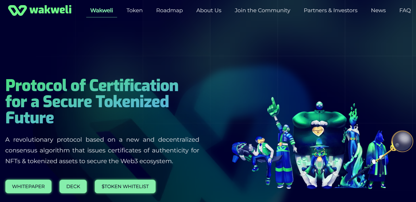 Wakweli là một giao thức chứng nhận NFT để cấp dấu xác thực có thể chứng minh cho NFT và các tài sản được mã hóa khác. Đổi lại, điều này sẽ thúc đẩy quá trình xác minh cho các ủy viên, thương nhân và nghệ sĩ của NFT.