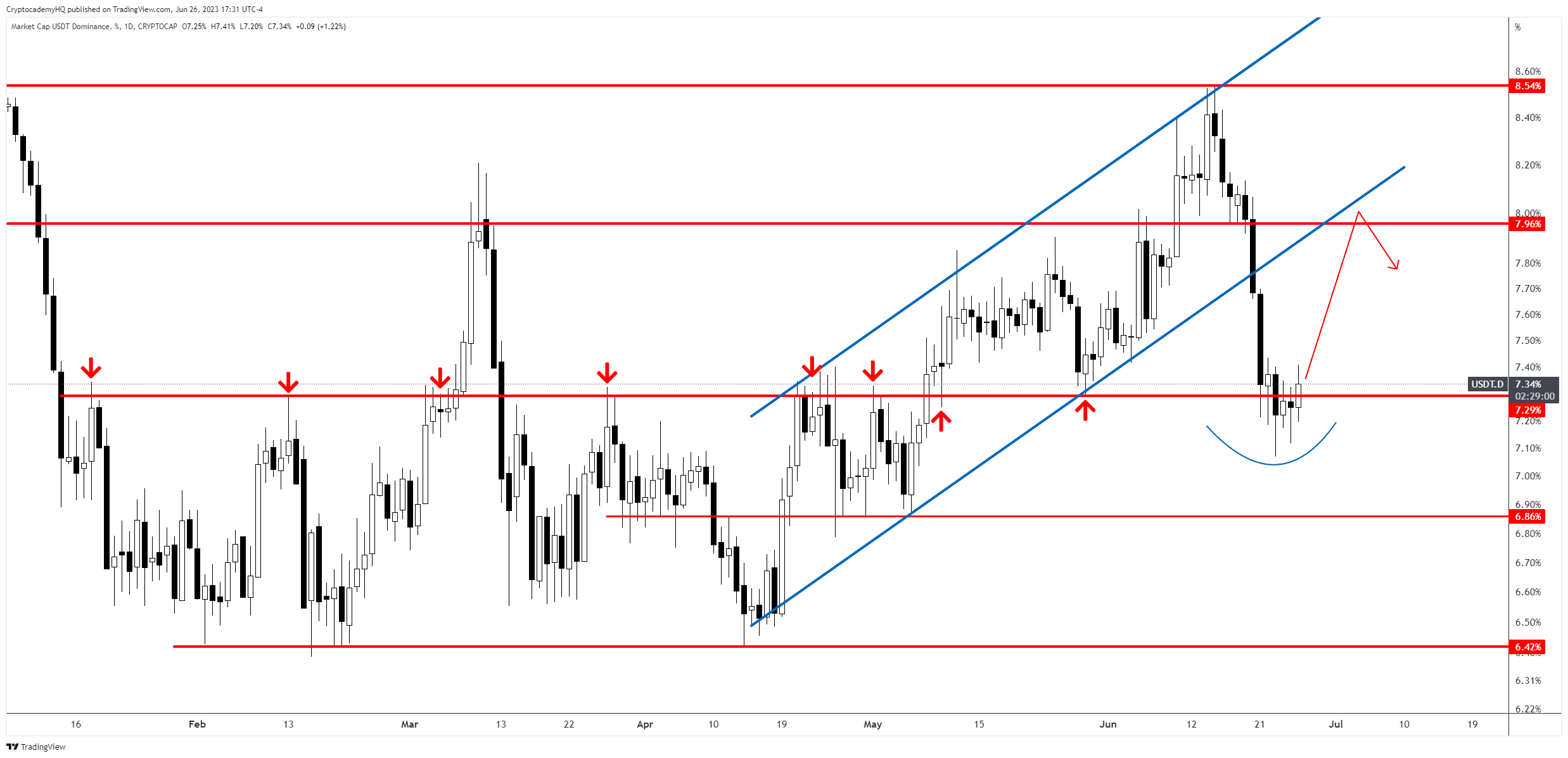 Tại thời điểm viết bài, USDT.D đang dao động ở mức 7,23%.
